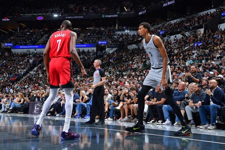 那场比赛中,文班亚马的发挥相对一般。虽然马刺队战胜了火箭队,但文班亚马16投仅8中,全场得到22分、8篮板、4助攻、2盖帽,同时出现4次失误和5次犯规。与申京的25+9+8相比,显然略逊一筹。不过,马刺队最终赢球,文班亚马仍是球队的第一功臣。可以说,在本赛季火箭与马刺的首次交手中,文班亚马与申京的表现可谓平分秋色。