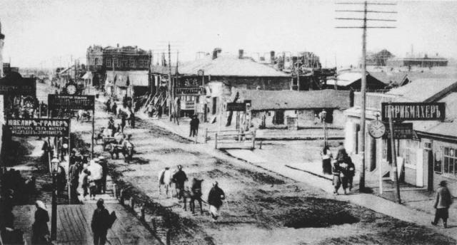 1907 年开埠后的中国大街。(图 / 哈尔滨史志)