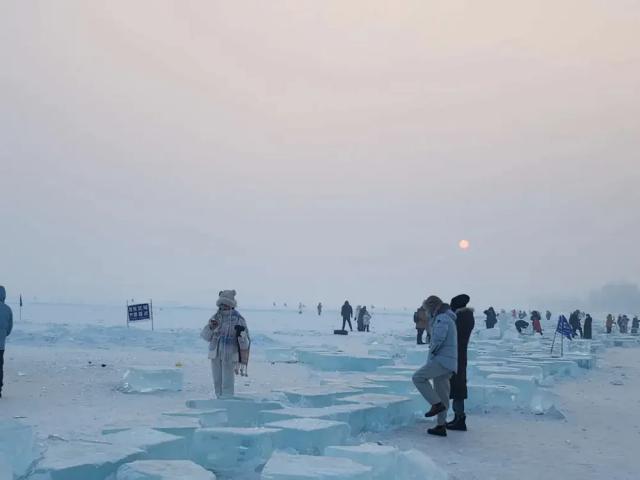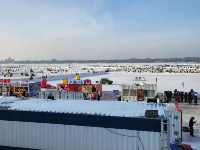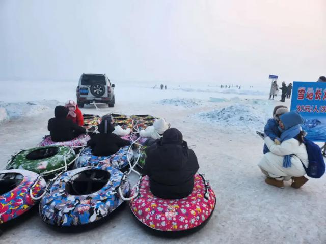 小孩子喜欢去江上滑冰、抽冰陀螺。必须是冻得邦邦硬的江面才行。尔滨爆火后,江面上多了不少新的游乐项目,坐雪圈、狗拉爬犁,热闹极了。