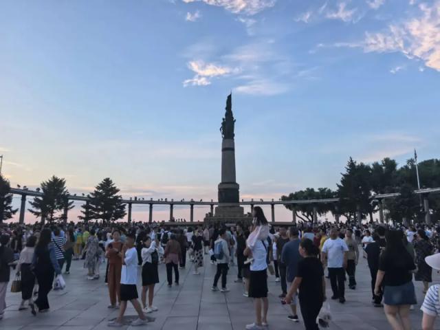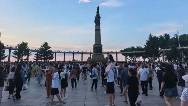 天气晴好的夏日黄昏,松花江畔万人空巷,台阶上总是长满了人。来晚的挤不进去,那也要面对着江水站一会儿才行。