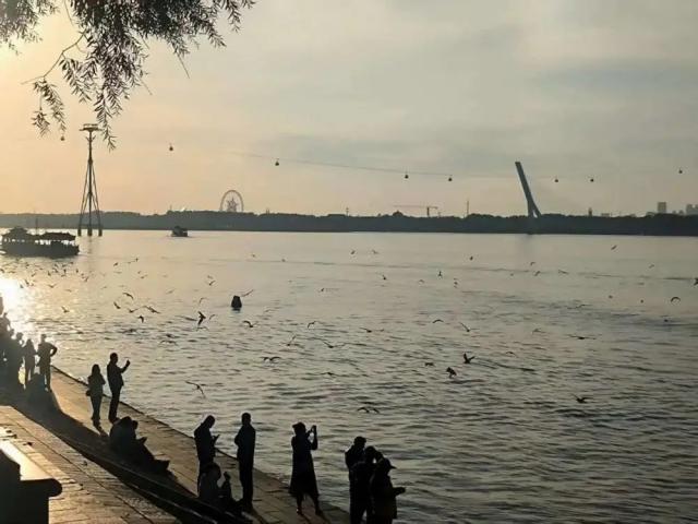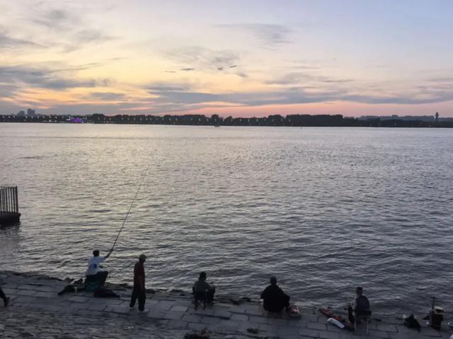垂钓者伸长鱼竿,肥白的江鸥掠过江面。这是属于哈尔滨人的"公园二十分钟"。人们望着平静微澜的江面,等日落后火烧云连成一片,暮色渐沉,所有人事都融化在温柔的夜色里。这是一天之中最惬意的时刻,人们在江水中照见自己。