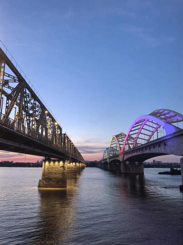 2014 年老江桥"退役",要建新的铁路大桥,把老桥拆了,好多哈尔滨人不愿意,就联名把老桥留下了。如今,新老江桥相邻而望,像长者牵起一个孩童,伴着江水讲起过去的故事。