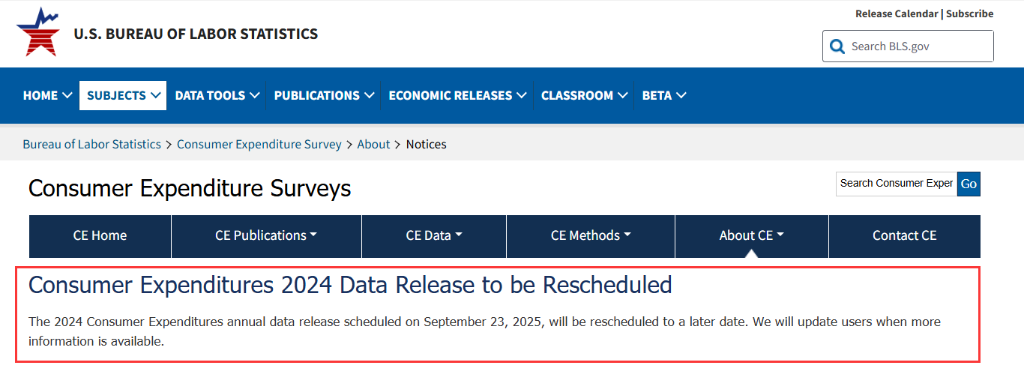 周五,美国劳工统计局突然宣布,原定于下周二发布的2024年度消费者支出数据将被“重新安排至稍后日期”。美国劳工统计局并未解释推迟的原因,也未提供新的发布时间表,仅表示“有更多信息时将通知用户”。